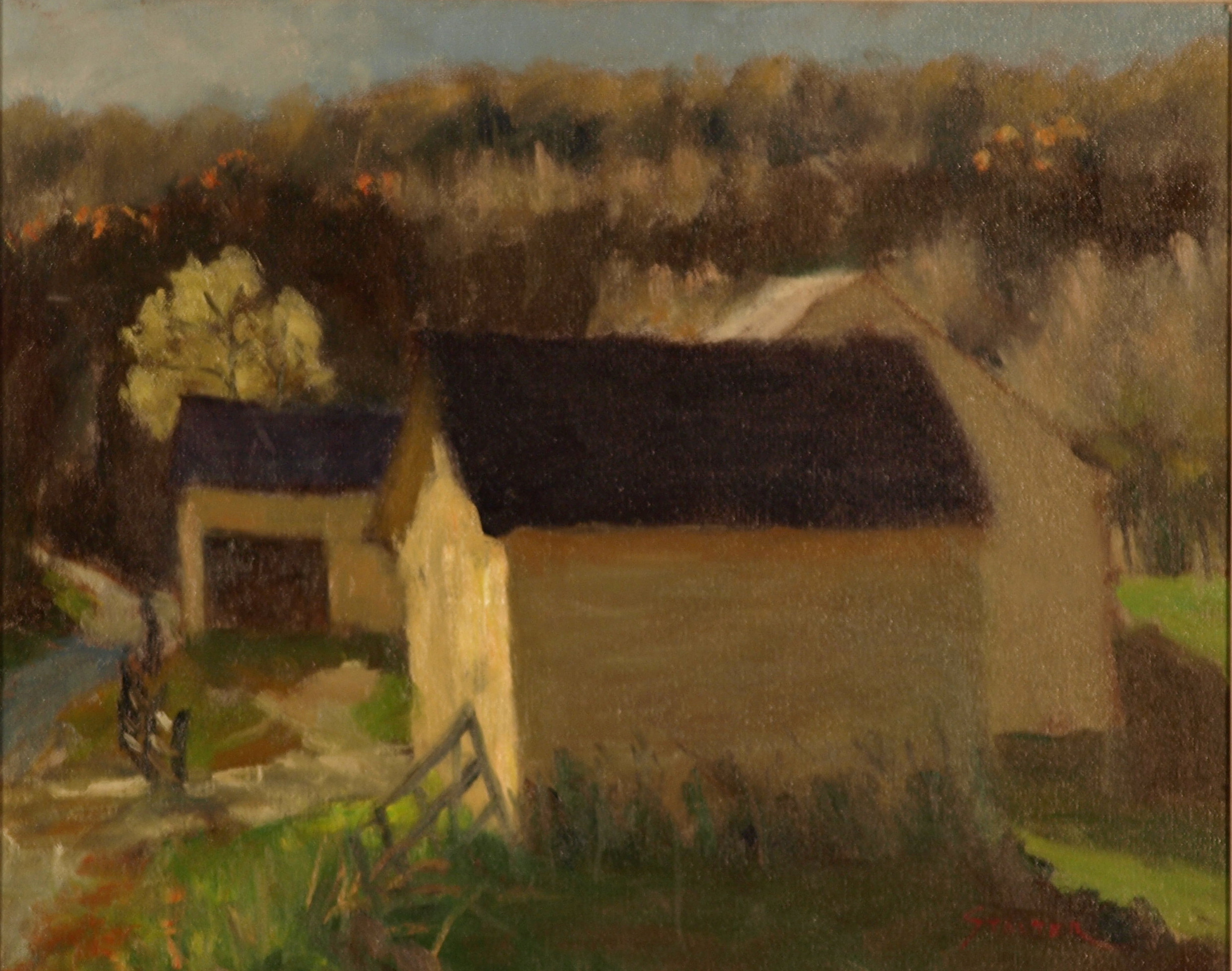Yellow Barns – Autumn Sunlight, Oil on Canvas, 16 x 20 Inches, by Richard Stalter, $450