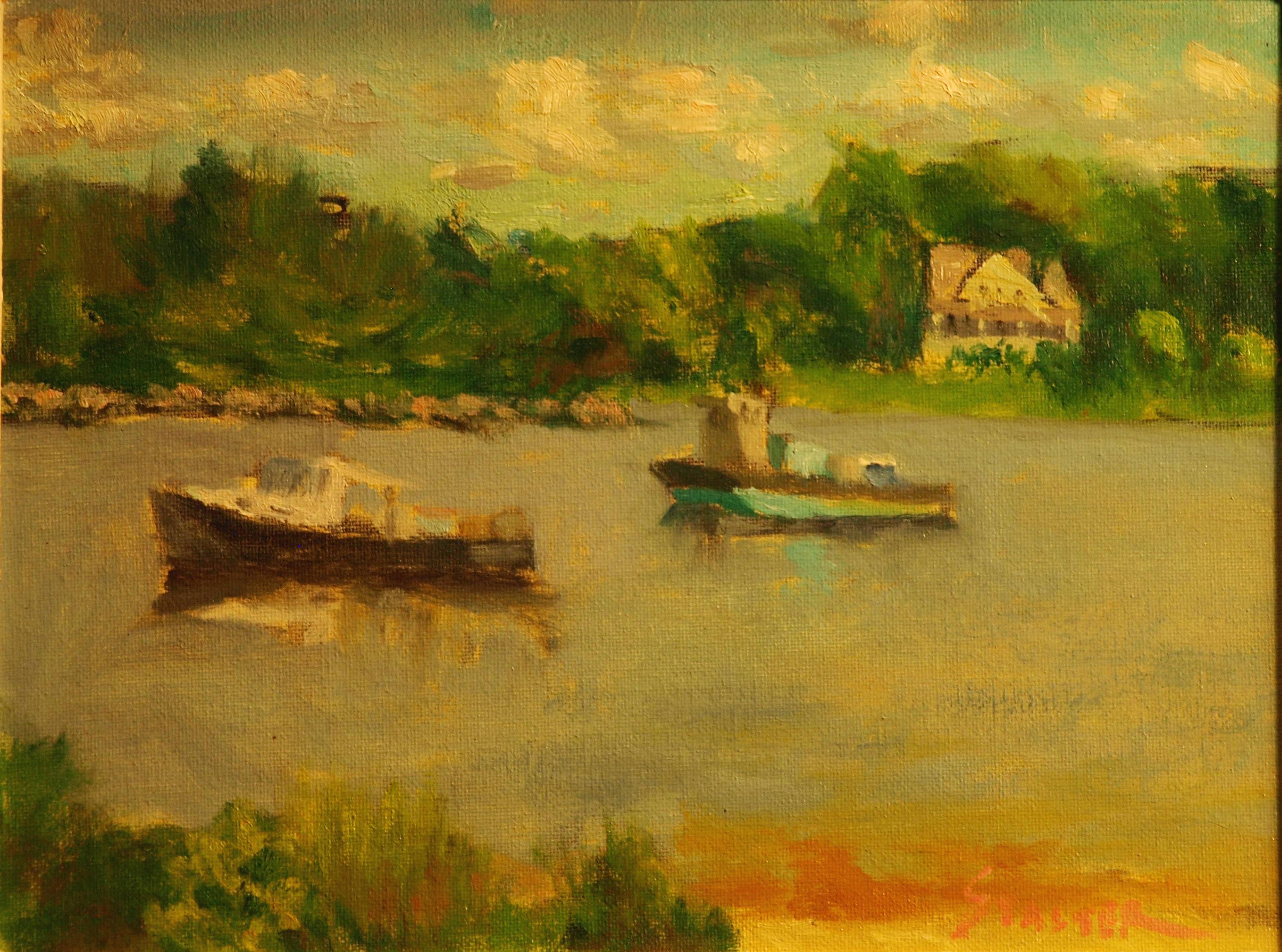 Rowayton Boats, Oil on Canvas on Panel, 9 x 12 Inches, by Richard Stalter, $225