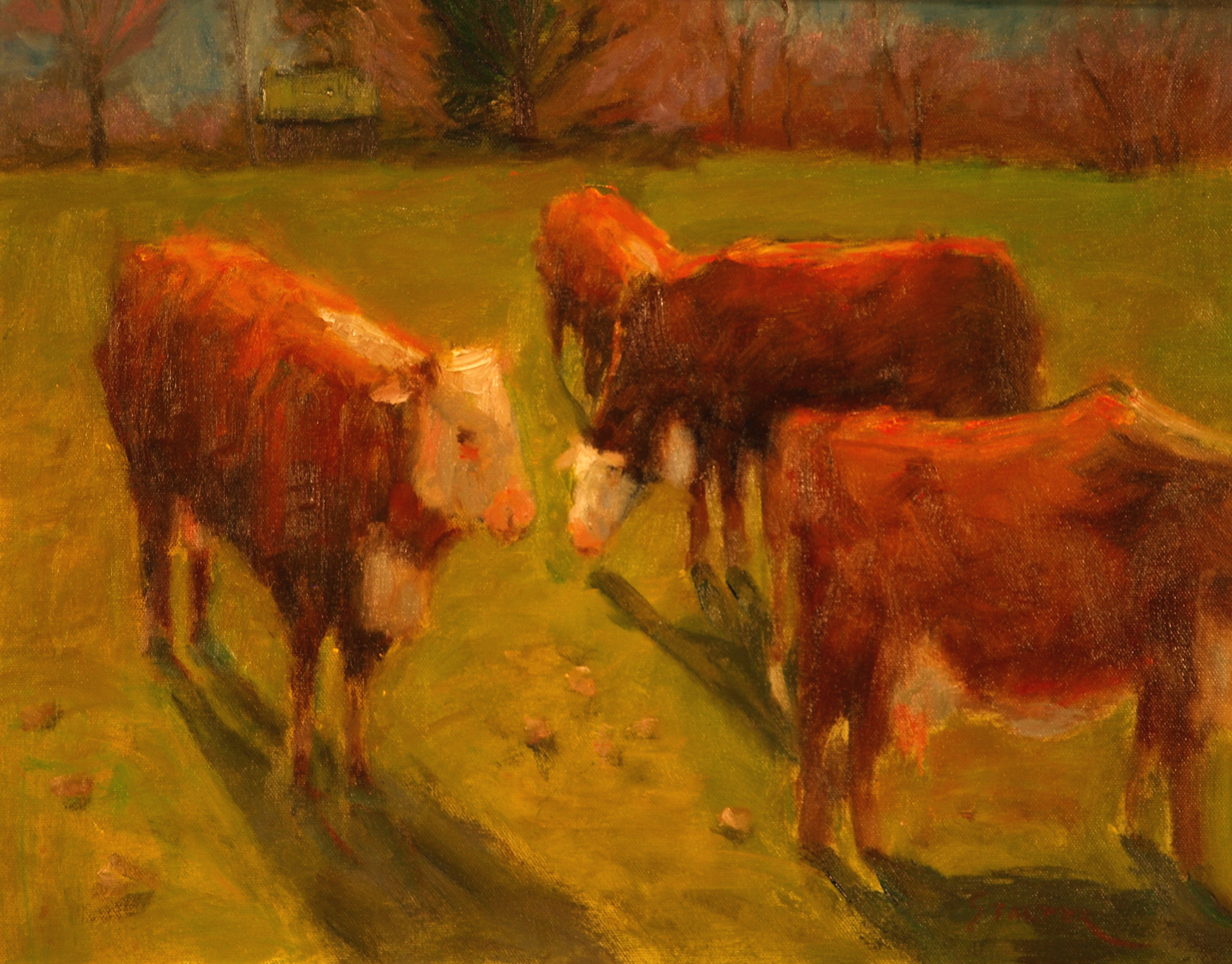 Three Cows and Calf, Oil on Canvas, 16 x 20 Inches, by Richard Stalter, $450 Published April 26, 2012 at 3288 × 2574 in Three Cows and Calf Three Cows and Calf, Oil on Canvas, 16 x 20 Inches, by Richard Stalter, $450 Three Cows and Calf, Oil on Canvas, 16 x 20 Inches, by Richard Stalter, $450