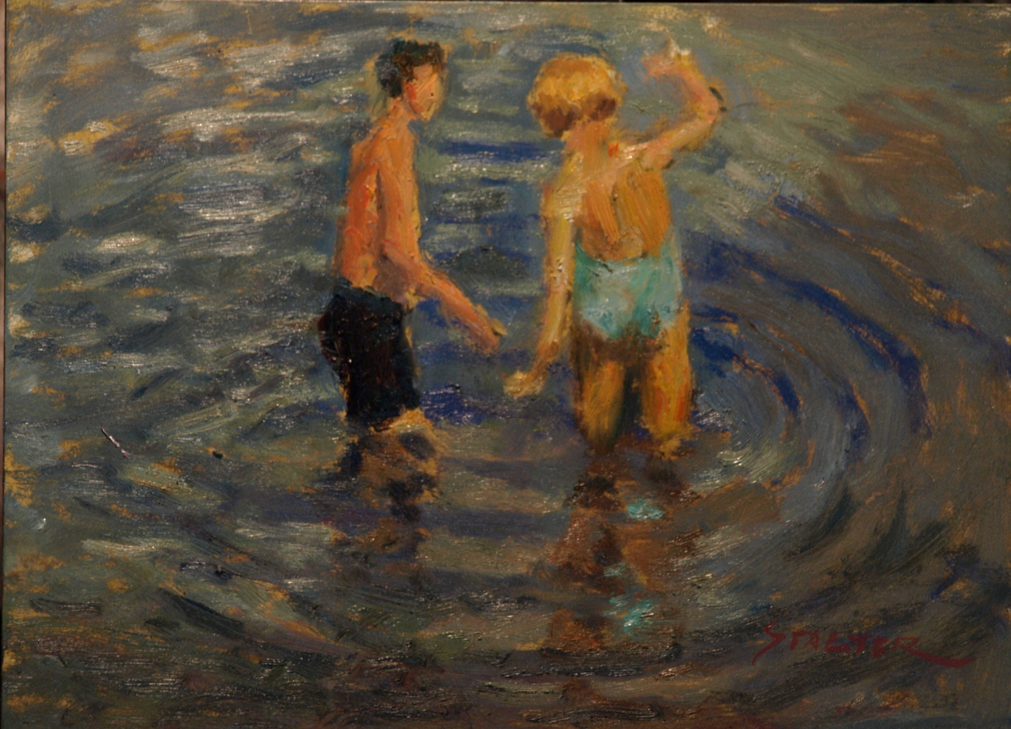 Swimmers, Oil on Canvas on Panel, 9 x 12 Inches, by Richard Stalter, $225
